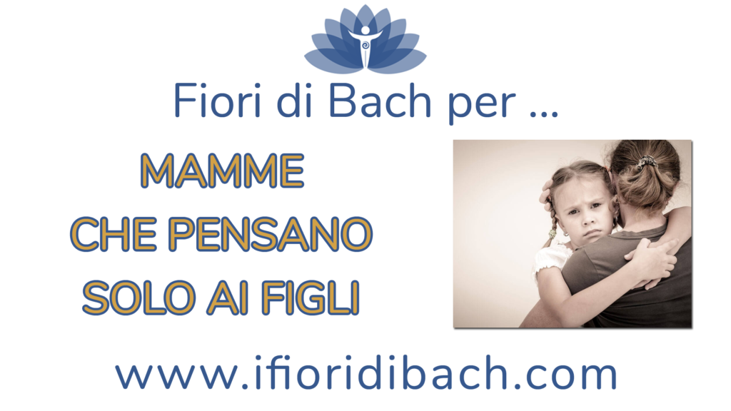Le mamme che pensano solo ai figli mettendosi completamente al servizio hanno probabilmente necessità di riequilibrare questa posizione di subordinazione arrivata forse per paura di non essere all’altezza del loro compito di madri devote e che una disattenzione o l’incapacità possa portare a terribili accadimenti alle loro creature. Molti fiori di Bach possono aiutare in questa situazione, ma certo il primo, senza dubbio è Red Chestnut, il fiore di Bach per la paura che succeda qualcosa di brutto alle persone che amiamo. Ne ho già parlato ampiamente sul sito a questa pagina: Red Chestnut – fiore di Bach per la paura – oggi facciamo il punto e do consigli alle neo mamme.